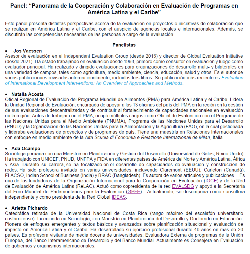 Panel: “Panorama de la Cooperación y Colaboración en Evaluación de Programas en América Latina y el Caribe”